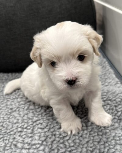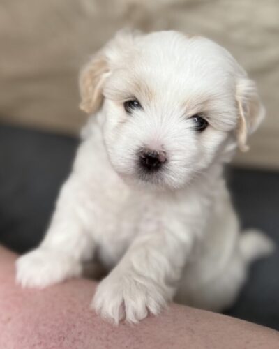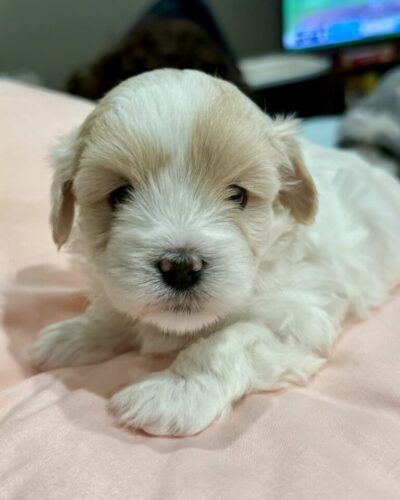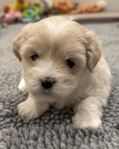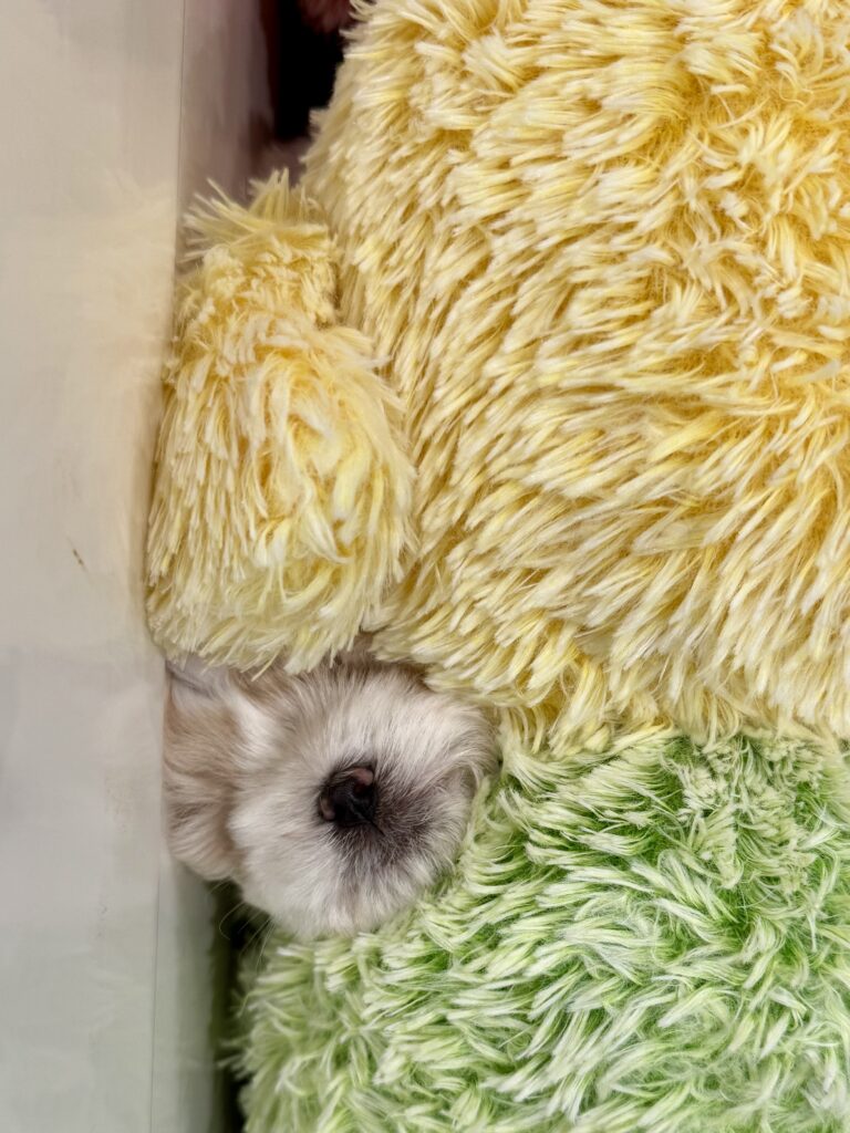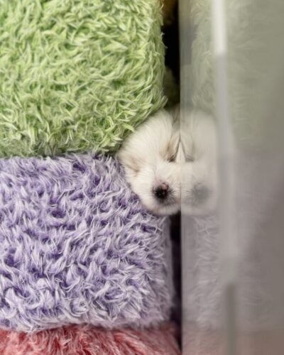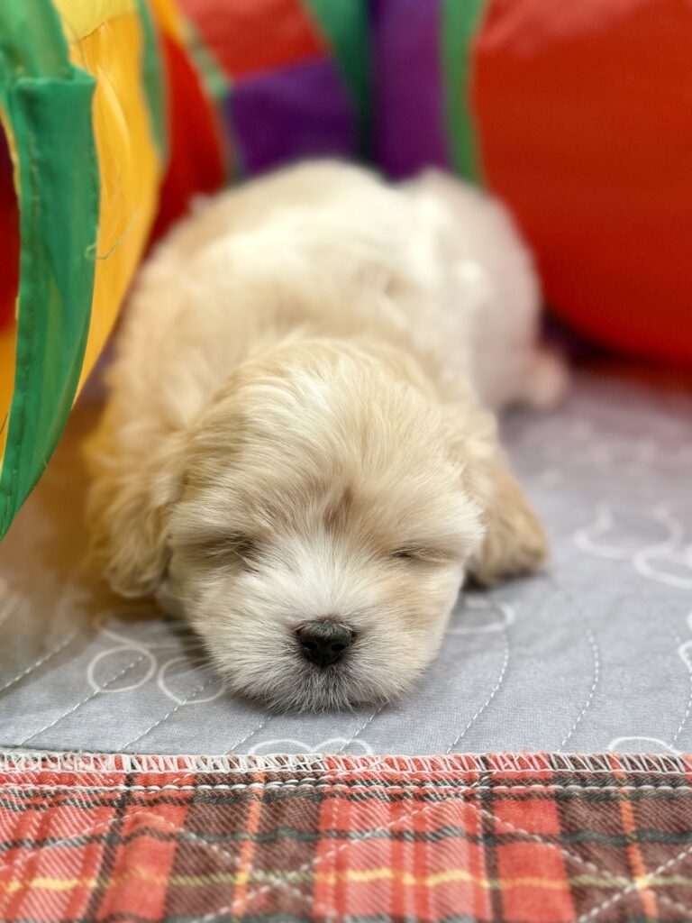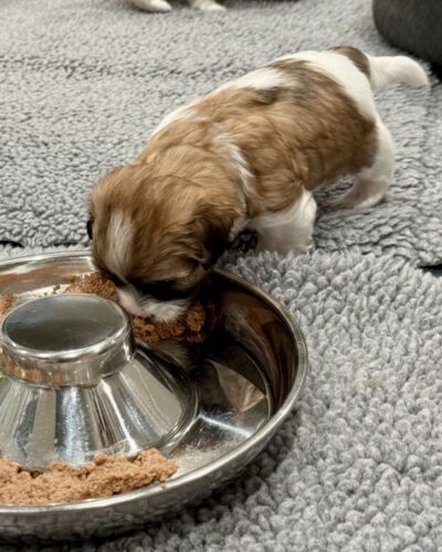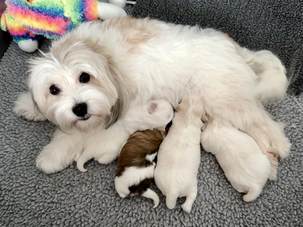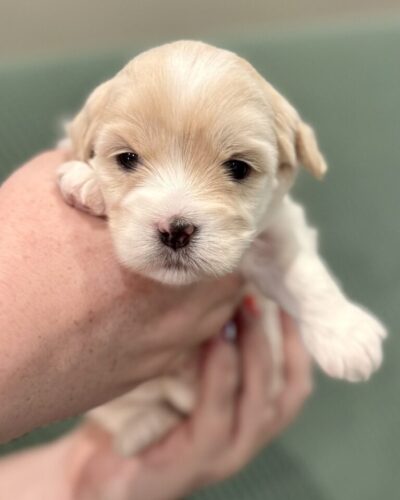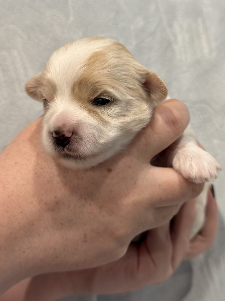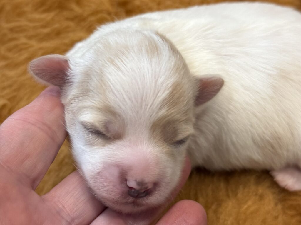 Two weeks old today! Eyes have opened and we guessed wrong…Ruby was the first, followed by Roxanne, Sue and Lola! They are no longer little potatoes whose sole focus was to grow. Getting up on all fours is their big goal now and they can drag themselves/walk all over the whelping box. Next up…who will be the first to open their ears?