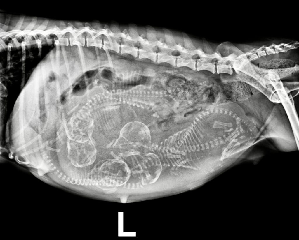 Dottie had a vet check and xray done today. She has gained 2 lbs and can no longer run and play with our pack. We’re very excited about the five puppies she’s carrying! The puppies appeared lined up and ready to go so we’re thinking Sun or Mon for the whelping day.