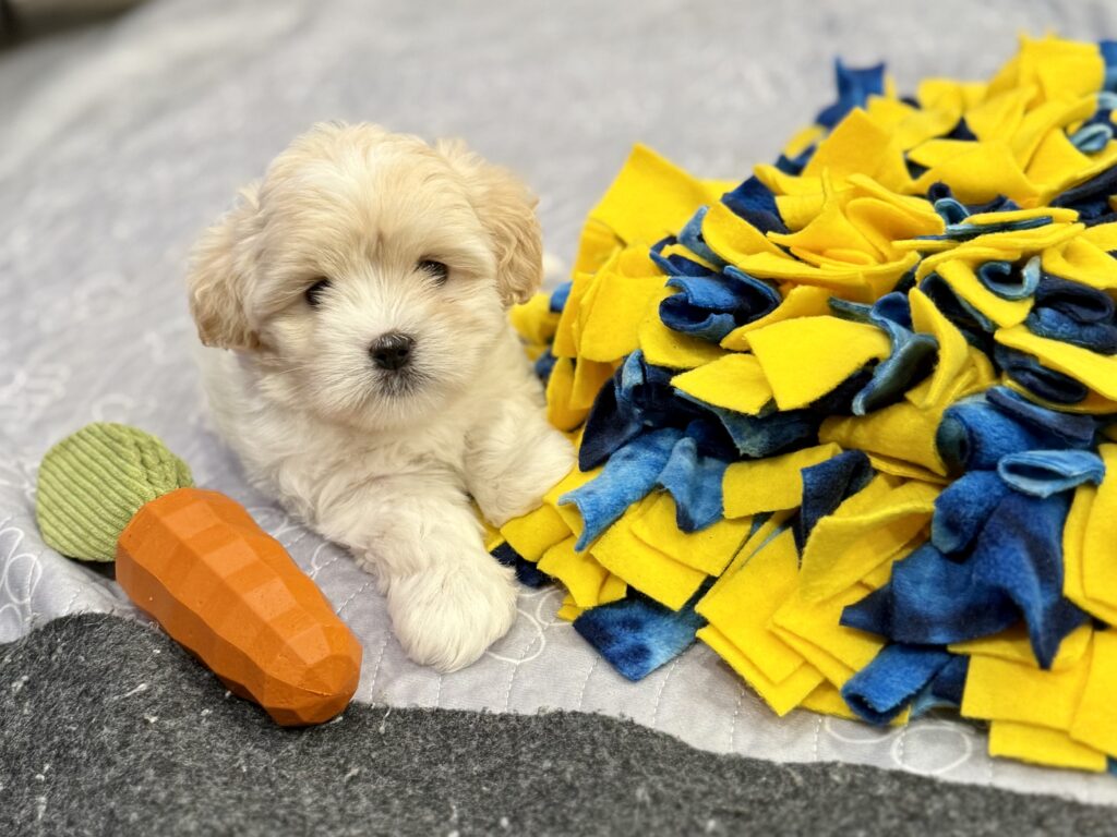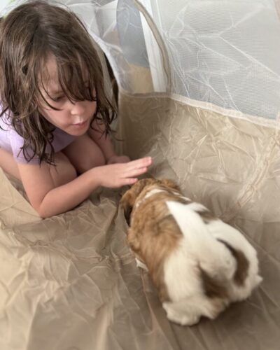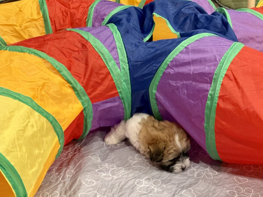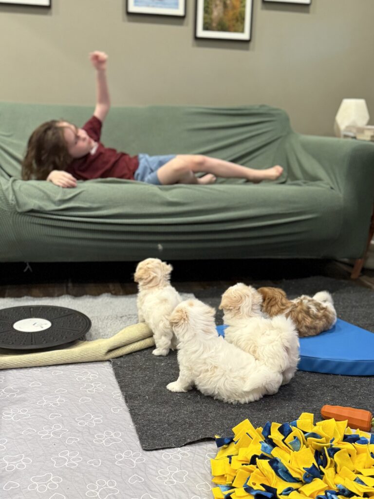 Six weeks old today! The pups made a splash at their Puppy Party and everyone was in love! They surprised us, everyone trying each station and most completing them! This week, they’re learning how to actually take a treat from our hands, are experiencing new barriers and challenges every day. Most importantly, they are learning how to be good canine citizens!