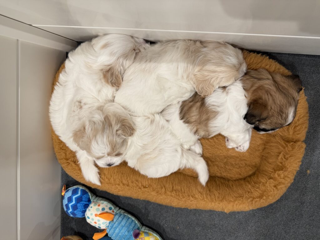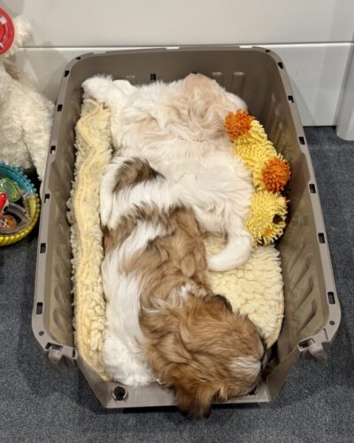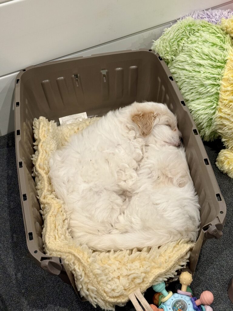 Seven weeks old today and crate training has begun in earnest! The pups are experiencing so many new things, working through our sound desensitization protocol, have had first baths, and are being exposed to clicker training.