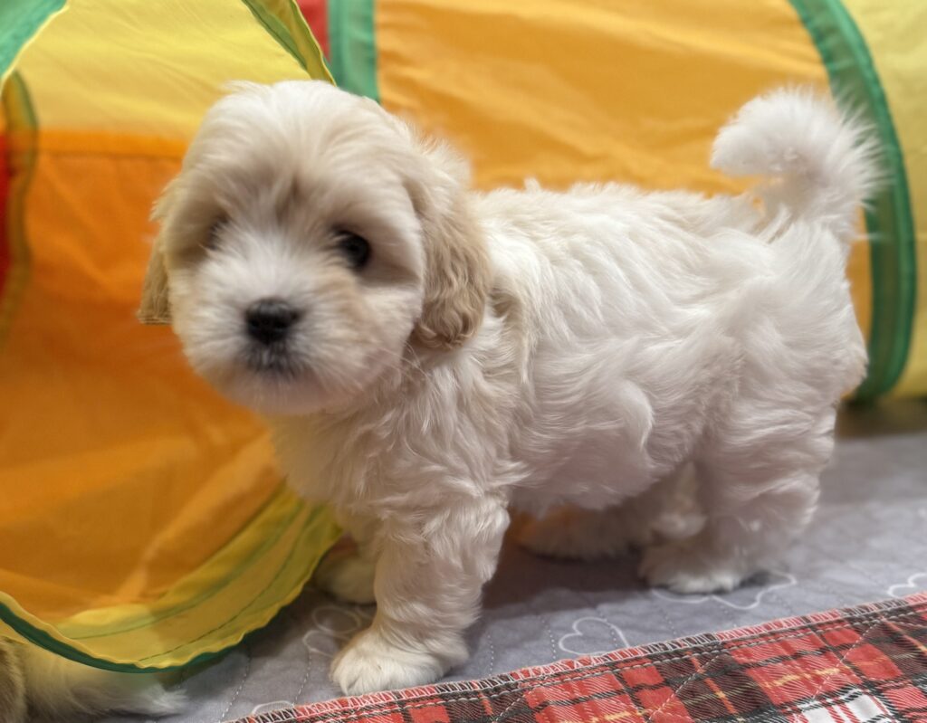 Four weeks old today! So much has changed: larger pen, solid food introduction, regular visitors, sound desensitization, new toys, new experiences, and more! Make sure you check our YouTube channel to see videos of the pups in action!